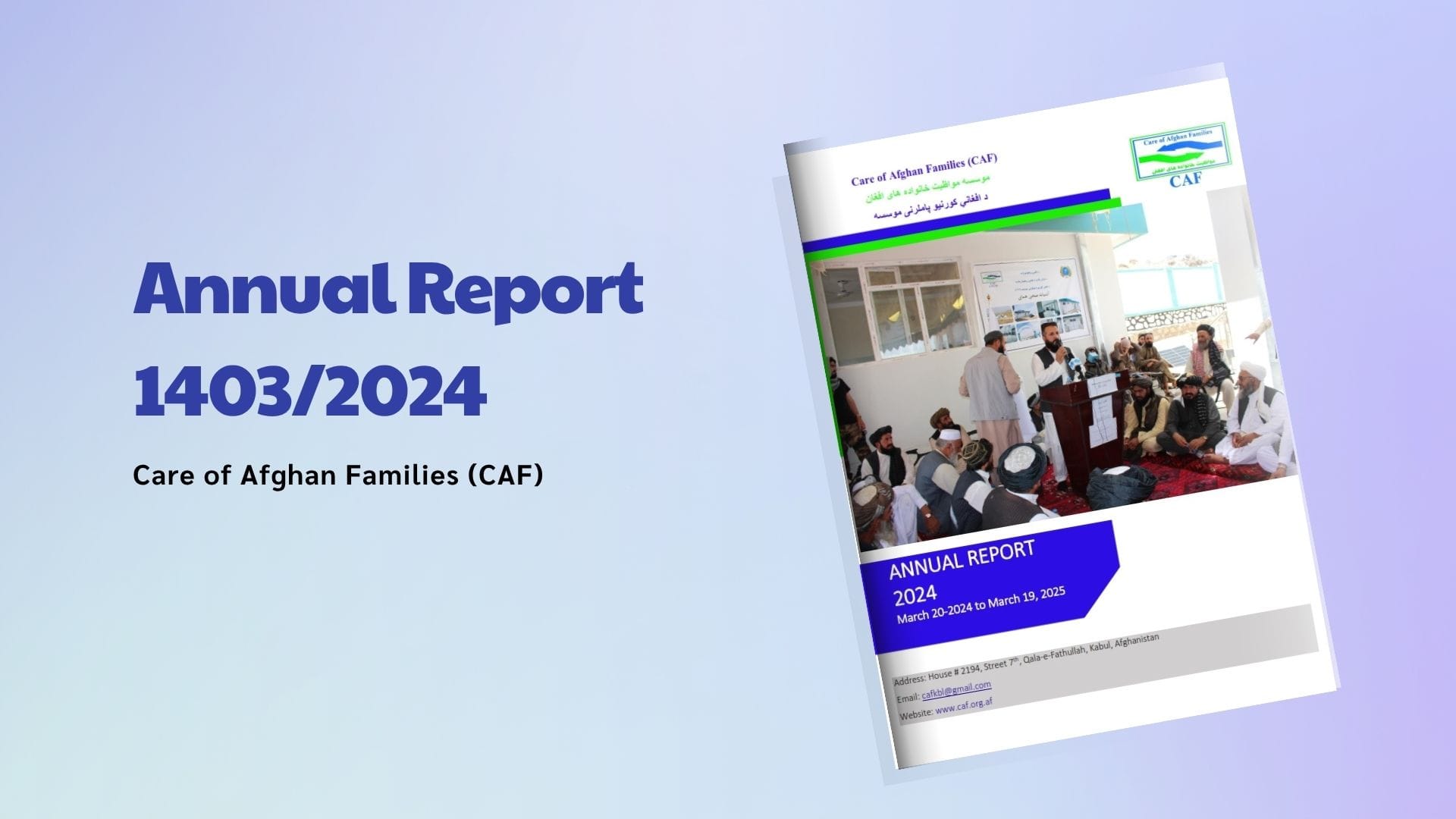 Care of Afghan Families (CAF) is pleased to present its Annual Report for the fiscal year 2023-2024 (March 20, 2024, to March 19, 2025). This report highlights 22 years of CAF’s dedicated service to the people of Afghanistan, showcasing our unwavering commitment to delivering equitable, high-quality health and nutrition services with dignity, compassion, and professionalism.